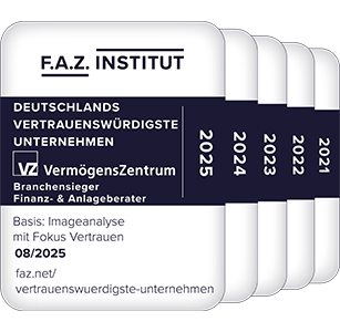 Das F.A.Z.-Institut hat das VZ VermögensZentrum zum fünften Mal in Folge als "höchst vertrauenswürdig" ausgezeichnet. In der Studie "Deutschlands vertrauenswürdigste Unternehmen 2025" wurden rund 17.100 Unternehmen getestet. Das VZ VermögensZentrum wurde erneut Branchensieger in der Kategorie "Finanz- und Anlageberater".