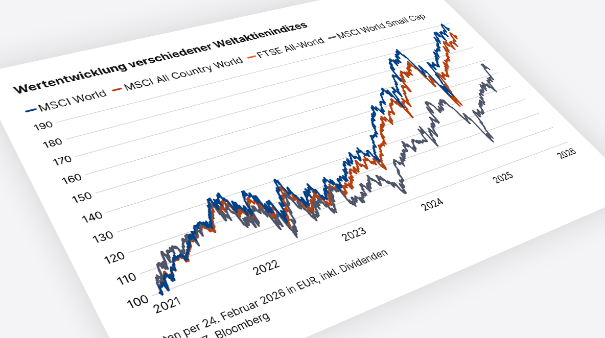 Die Auswirkungen zeigen sich in der teils stark abweichenden Rendite, die in den vergangenen fünf Jahren erzielt werden konnte (siehe Grafik unten). Es fällt aber auf, dass der FTSE All-World und der MSCI All Country World sich trotz der unterschiedlichen Aktienanzahl fast identisch entwickelt haben. 2025 haben die beiden Indizes über einen Prozentpunkt besser abgeschnitten als der MSCI World. Dies ist auf die positive Wertentwicklung von Schwellenländeraktien zurückzuführen.